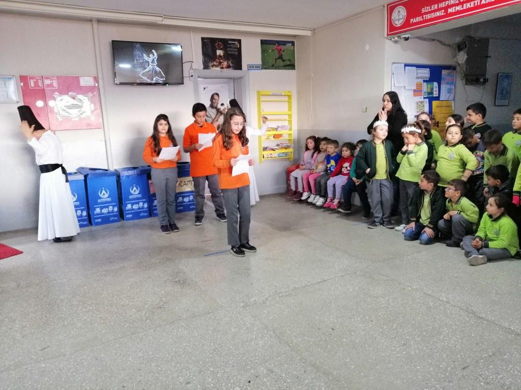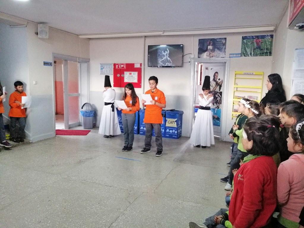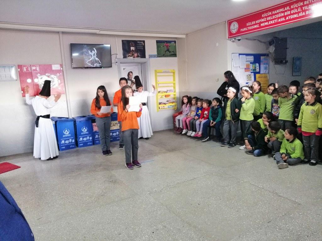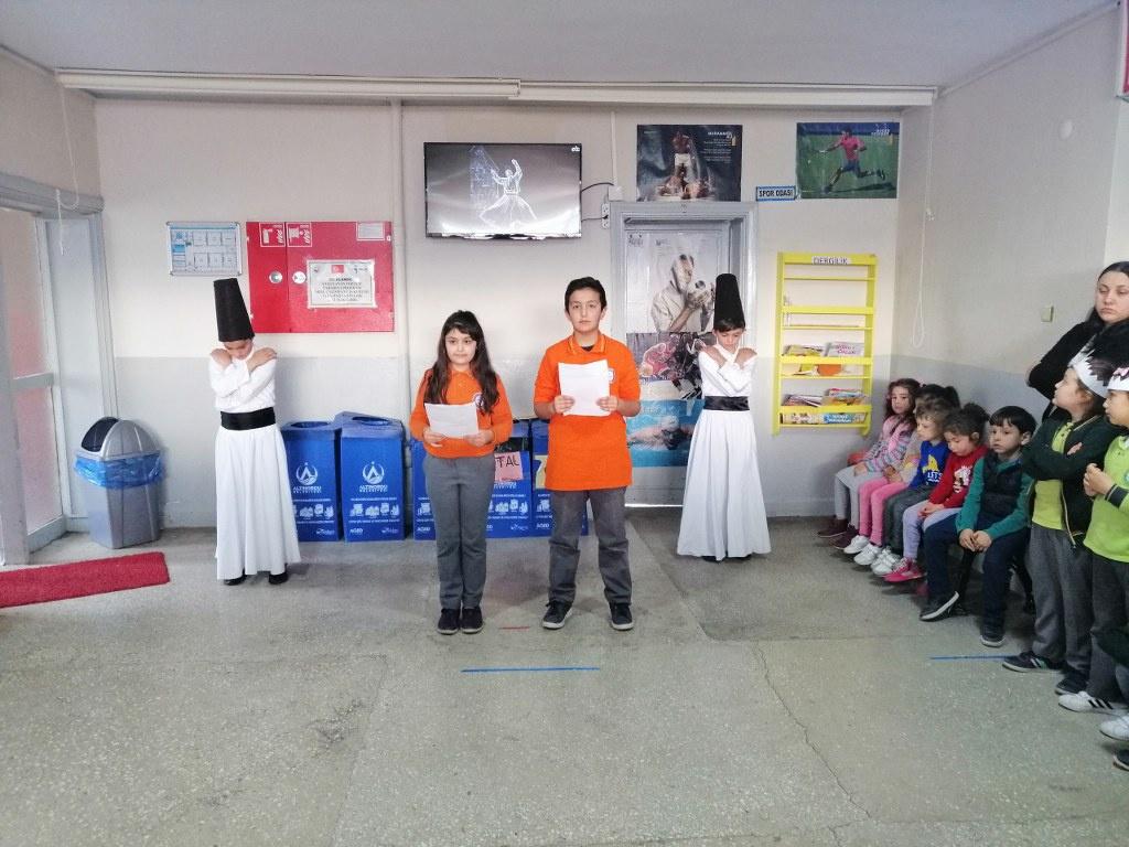 Maziden Atiye projemiz kapsamında okulumuzda MEVLÂNÂ CELÂLEDDÎN-i RÛMÎ tanıtmak amacı ile ilk olarak pano hazırlandı. Daha sonra Semazenler eşliğinde MEVLÂNÂ CELÂLEDDÎN-i RÛMÎ'nin hayatını anlatan bir tören düzenlendi. Son olarak Semazenlerimiz sınıfları gezerek Konya ve Mevlana ile özdeşleşen Mevlana Şekeri dağıtdı. Emeği geçen Fen Bilimleri Öğretmenimiz Merve KOCACAN ve öğrencilerimize teşekkür ederiz.
